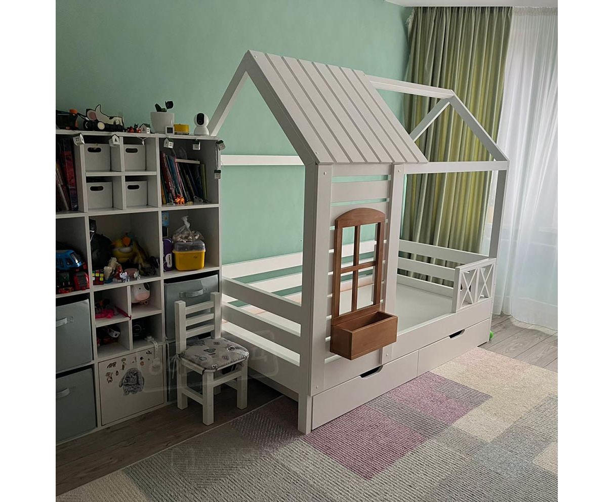 Детская кровать домик из массива сосны Авиньон с ящиками