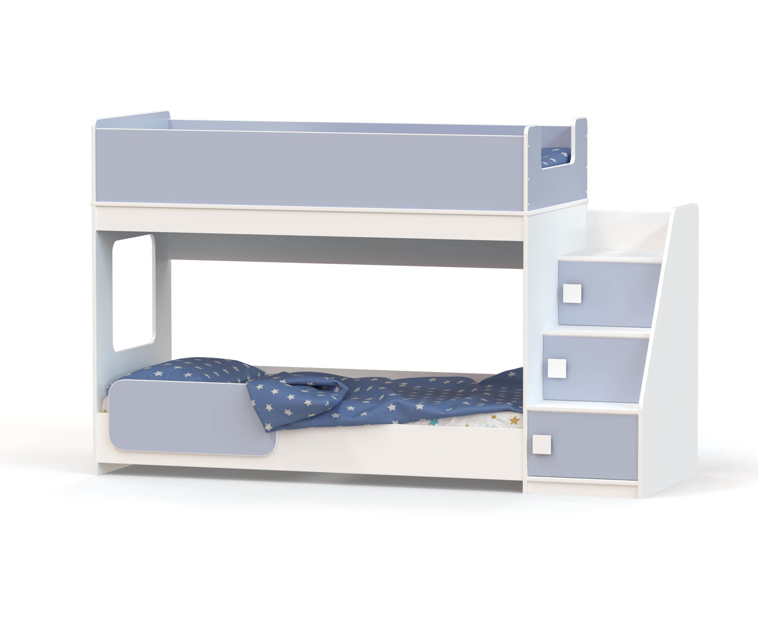 Двухъярусная кровать с угловой лестницей Ridgimmi 4.3 компактна и современна, выполнена из экологичных материалов, отличное качество по привлекательной цене. Верхнее спальное основание - лист ЛДСП, нижнее - латофлекс. бортик безопасности идет в подарок.