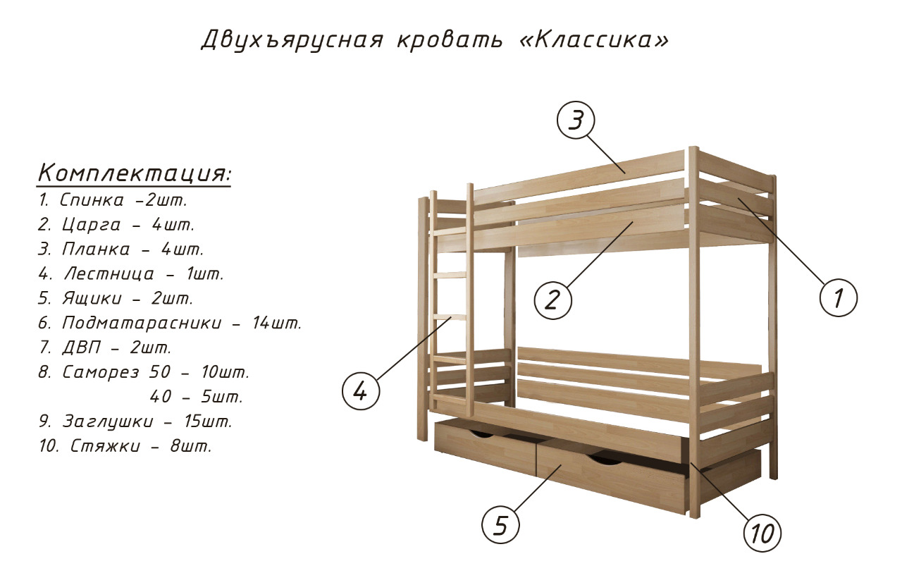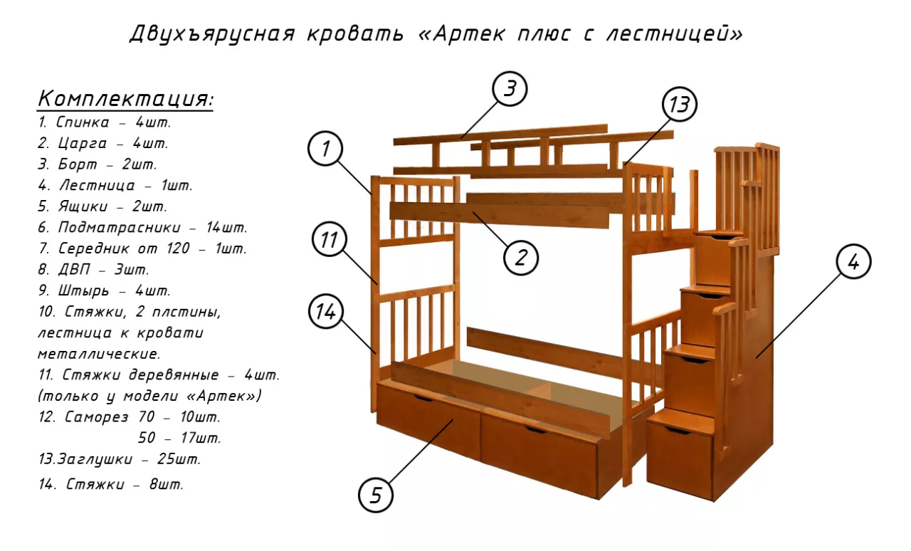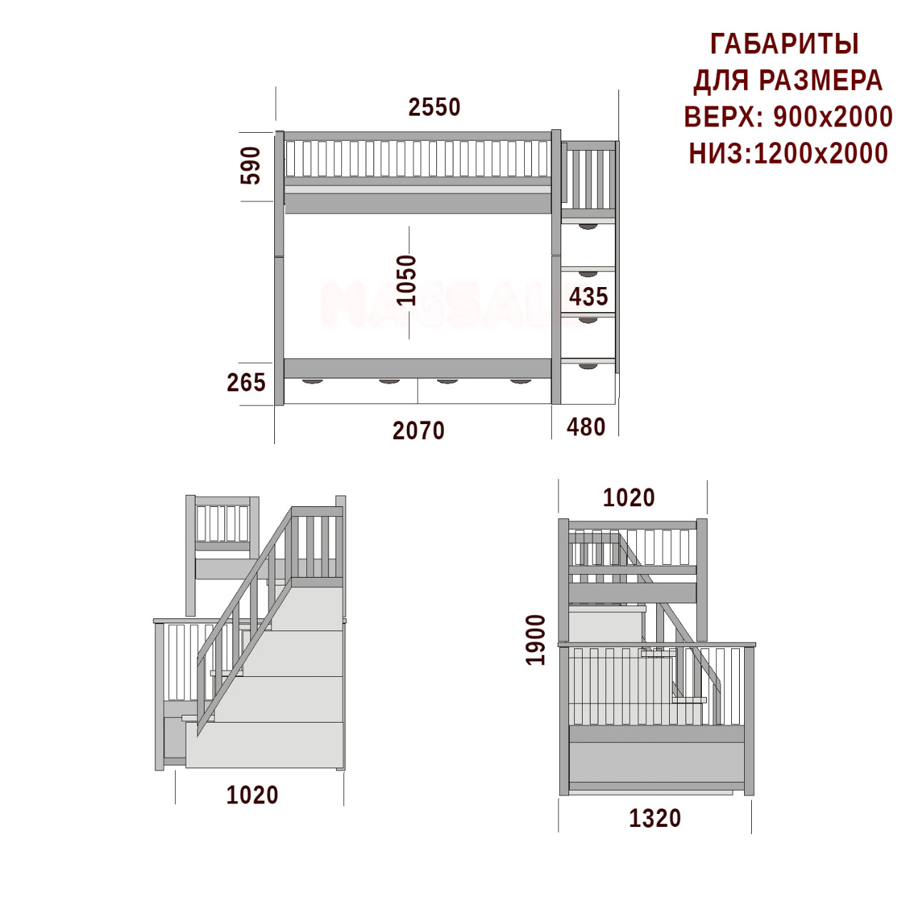 Двухъярусные кровати из сосны с Лестницей-комодом