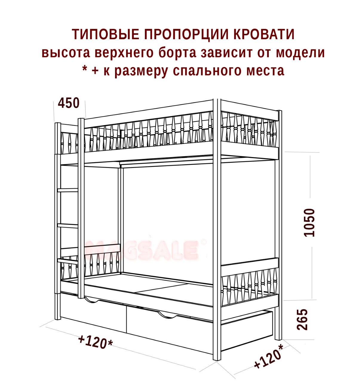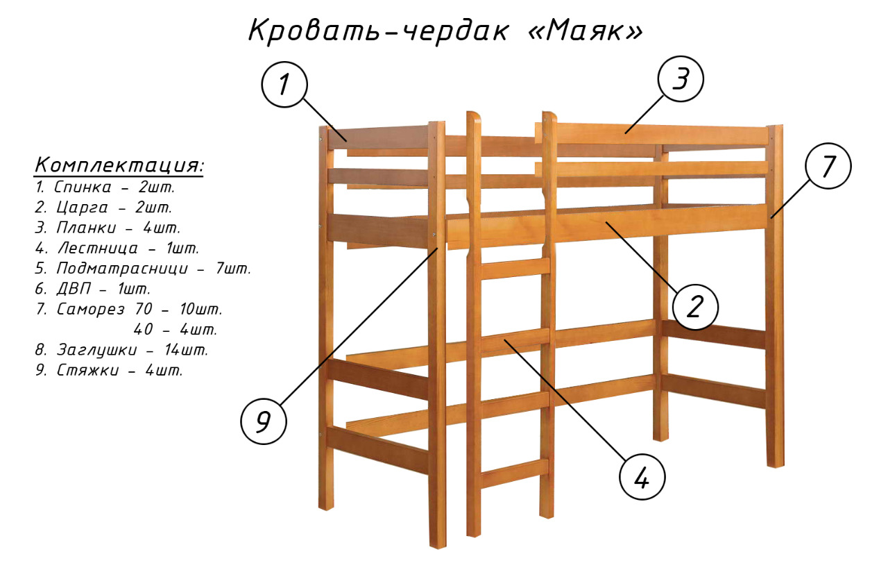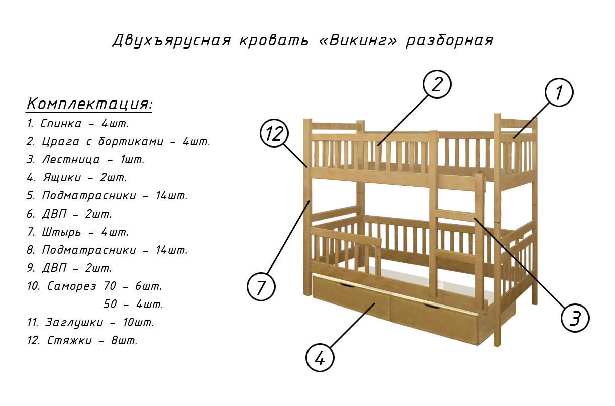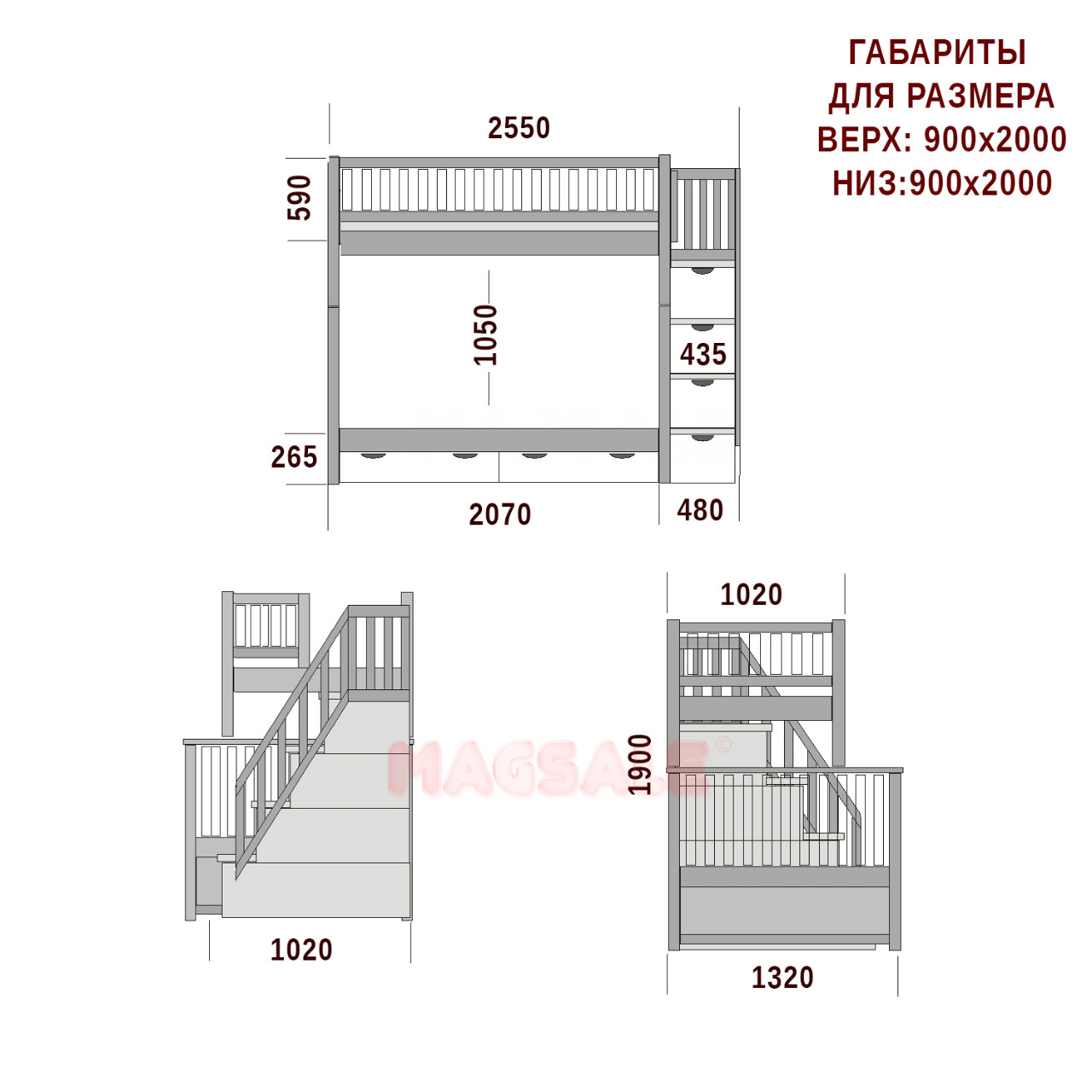 Двухъярусные кровати из сосны с Лестницей-комодом
