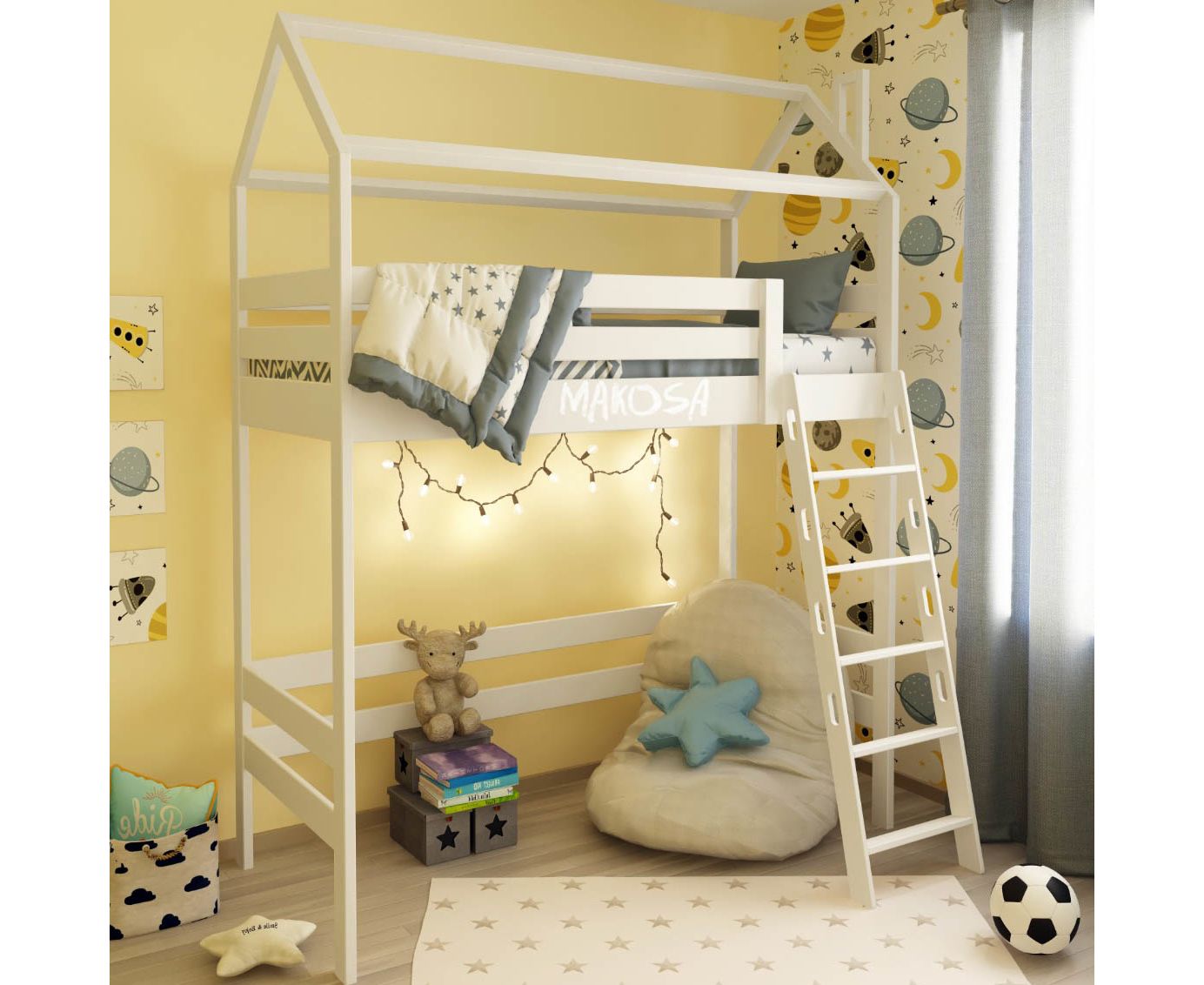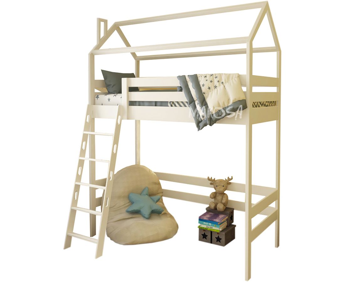 Кровать-чердак из массива дерева Синема. Верхнеярусная кровать со спальным местом "под потолком". Высокие стильные бортики с вертикальными планками. Стильная и прочная модель имеет много ребер жесткости, таким образом обеспечена отличная устойчивость и основательность.