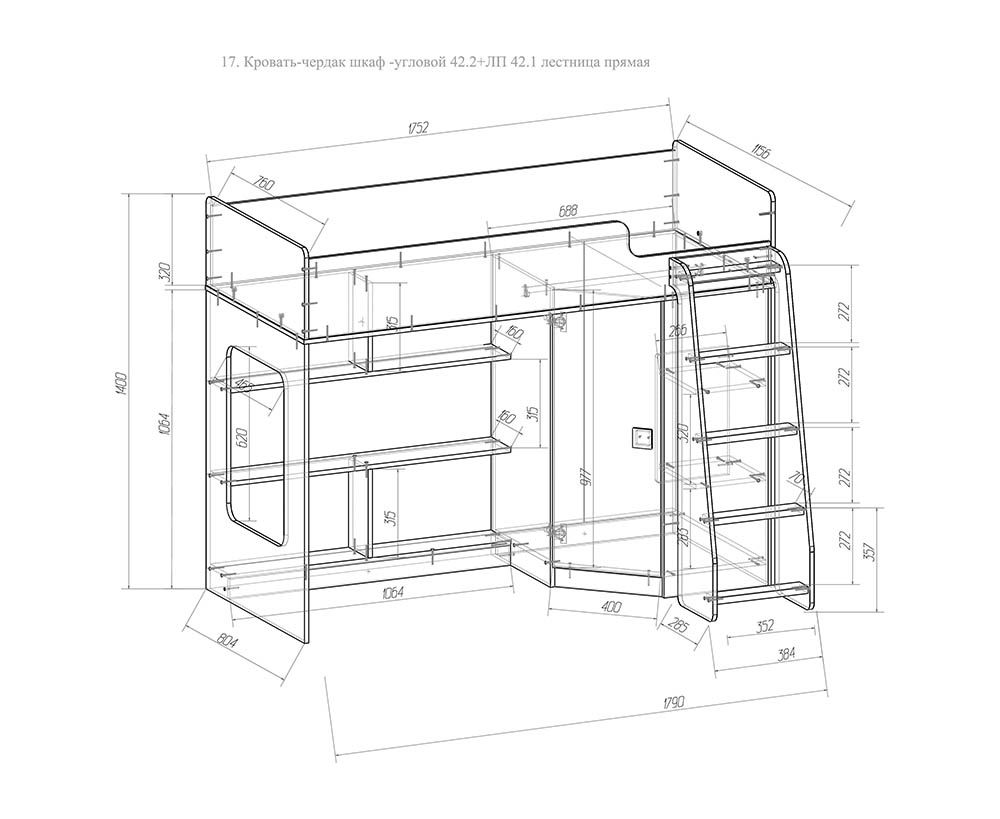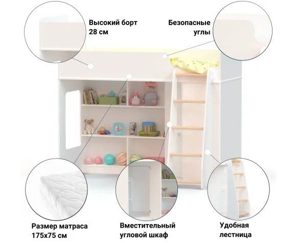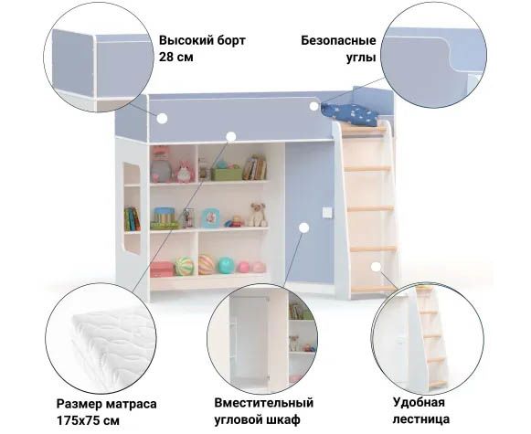 Кровать-чердак с угловым шкафом Ridgimmi 2.2. Детская кровать-чердак RIDGIMMI 2.2 имеет современный дизайн для детской комнаты и выполнена из экологичных материалов, отличное качество по привлекательной цене.